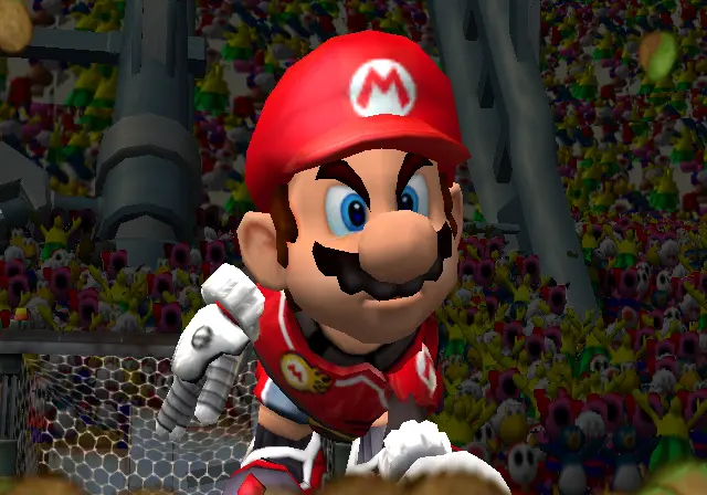 Deslice el mando Wii para realizar el movimiento defensivo «Big Hit» y aplanar a los enemigos. Para defenderse de un intento de gol «Mega Strike», utiliza el mando Wii para apuntar a la visualización y defenderse manualmente contra varias bolas mientras se disparan hacia la visualización